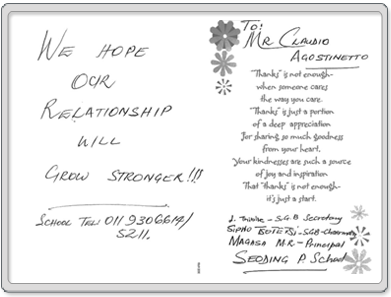 Whilst listening to UDO CARELSE who hosted the early morning show on 702 towards the end of last year, we were very touched by a plea from the principal MAMOKETE MAGASA of the SEODING PRIMARY SCHOOL in Soweto who were in desperate need of furniture, as everything from their offices had been stolen during a break in. As we had some furniture at our offices that was currently not being used, we volunteered to donate this to the above mentioned school. We were delighted with the response from MAMOKETE MAGASA who expressed her thanks and sent us a couple of photos.
