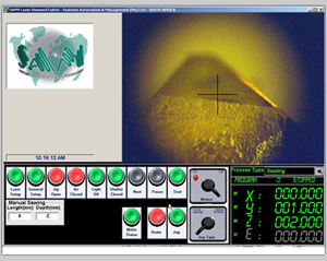 The SAMY Laser diamond cutter is controlled by the “ADVANTAGE 400 Pack” for a system up to 5 axis. +/-10V as well as stepper output is available. The system is based on the powerful PMAC2 axis controller. The Pack version of the Advantage 400 has no operator panel but in the SAMY system a Visual Basic Developed User interface on a Windows XP Professional Platform is used for all Parameter control and storage, while all Cutting control is performed directly and independently by the Motion controller.